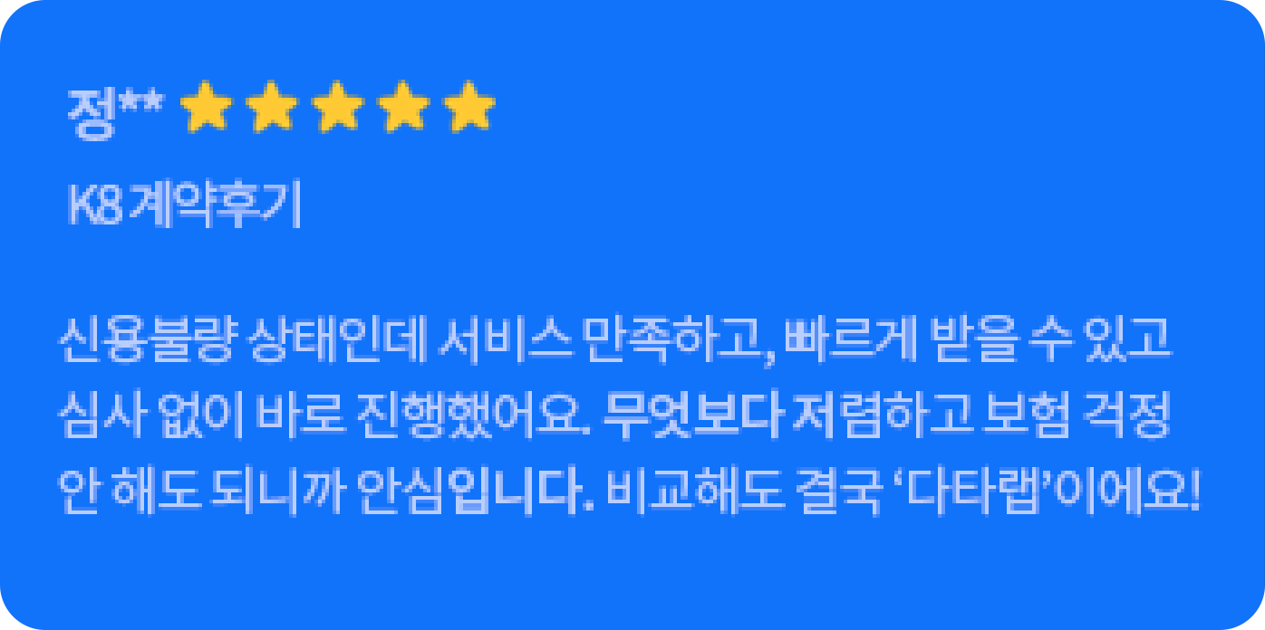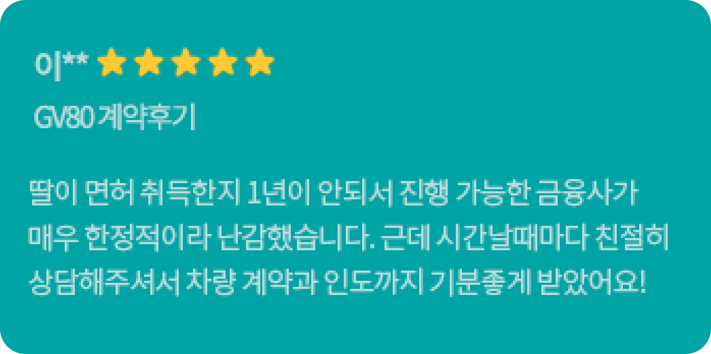 고객님께서 1월 20일부터 심사를 보시며, 계약일까지 한달내로 색상은 블랙 아니면 안하신다고 하셨습니다. 매일 블랙나오기만을 기다리다가 재고를 찾아서 인도까지 도와드렸습니다. 고객님도 너무 만족하시고 지인분들도 소개해드린다고 하셔서 뿌듯했습니다. 담당매니저 : 김현지